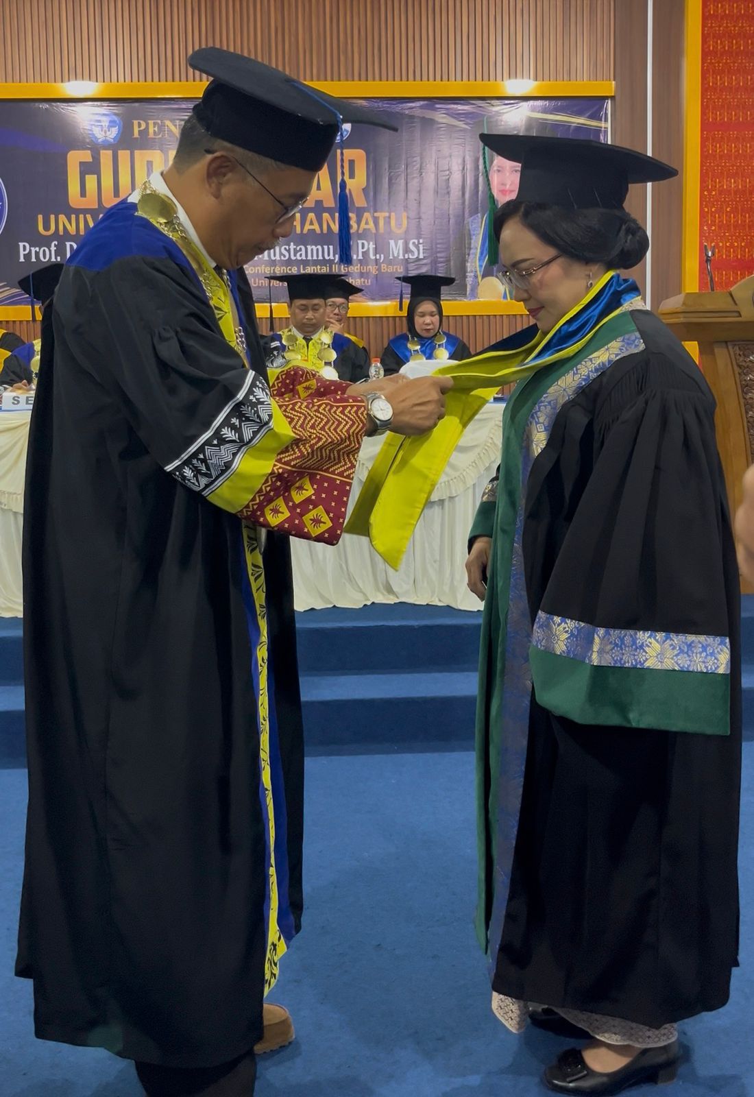 “Gelar Guru Besar bukan puncak, tapi awal pengabdian yang lebih besar. Kampus harus jadi menara air yang mengalirkan ilmu untuk kemajuan daerah,” tegas Prof. Novilda disambut tepuk tangan hadirin.